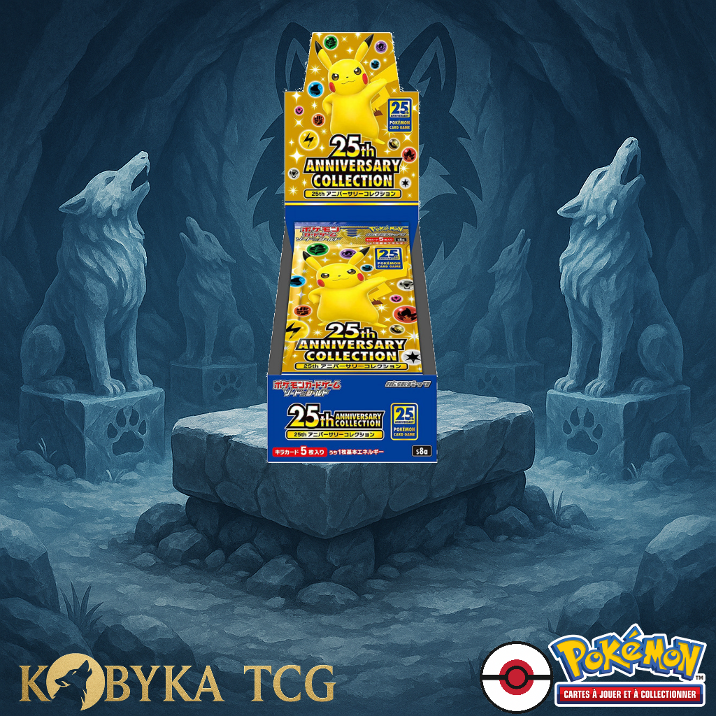 Célébrez les 25 ans de Pokémon avec l’une des extensions japonaises les plus emblématiques : 25th Anniversary Collection (S8A). Cette série spéciale rend hommage aux Pokémon les plus mythiques du JCC, avec des rééditions modernes, des cartes anniversaires exclusives, des Pokémon légendaires et une sélection de holo, V, VMAX et cartes brillantes uniques au marché japonais. Un display incontournable pour tous les fans et collectionneurs.