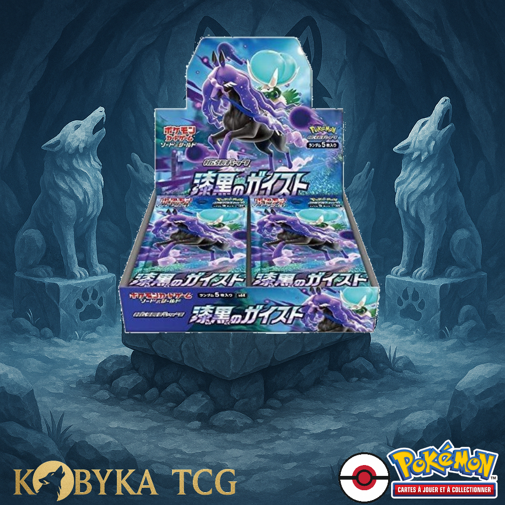 Plongez dans une atmosphère mystique avec Jet Black Spirit (S6K), l’une des deux extensions japonaises formant le bloc Règne de Glace (Chilling Reign). Cette série met en vedette Spectrier accompagné du redoutable Calyrex Cavalier d’Effroi V et VMAX, ainsi que de magnifiques cartes SR/HR aux illustrations sombres et élégantes. Une extension très appréciée des collectionneurs de cartes japonaises grâce à sa qualité d’impression premium.