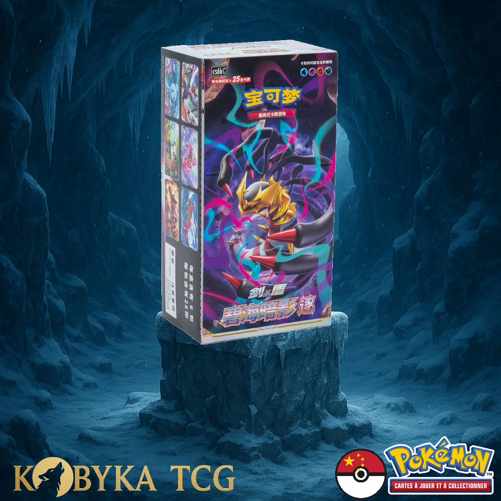 Plongez dans l’univers mystérieux de Azure Shadow : Pursuit, une édition jumbo chinoise spectaculaire inspirée de Lost Origin, centrée sur Giratina dans sa forme originelle. Cette série exclusive propose des cartes holo premium marquées d’un tampon spécial, rendant chaque tirage encore plus prestigieux.