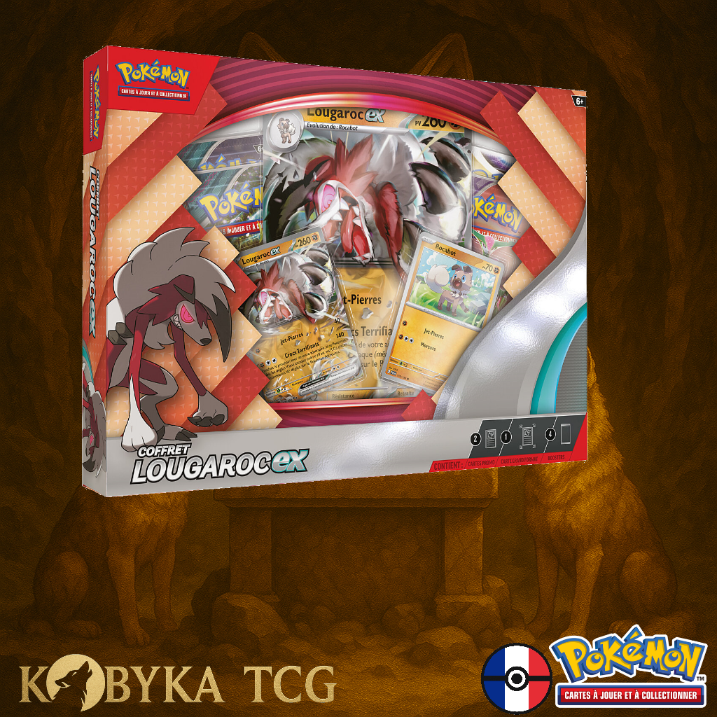 Spécificités : Coffret promo — Pokémon-ex Combat, carte jumbo, duo évolutif Rocabot → Lougaroc-ex