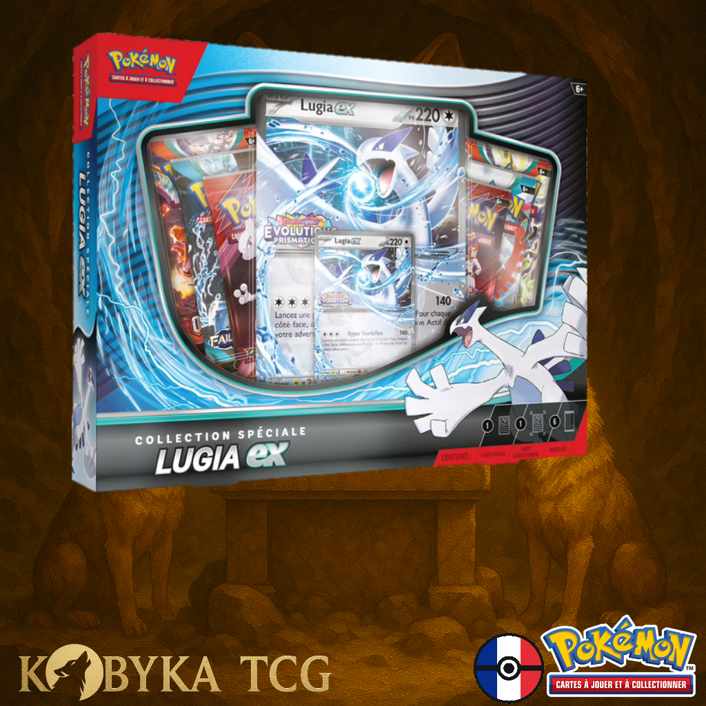 Plongez dans la puissance légendaire de Lugia-ex, un Pokémon-ex majestueux qui ne cesse jamais le combat ! Que vous soyez à une carte Récompense de la victoire parfaite ou au bord d’un retournement spectaculaire, Lugia-ex déploie toute sa force pour vous mener au sommet. Ce coffret spécial met à l’honneur une carte promo brillante jouable ainsi qu’une carte jumbo impressionnante — un duo parfait pour les collectionneurs comme pour les stratèges.