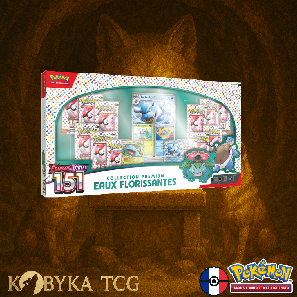 Revivez la nostalgie de la première génération avec ce coffret exceptionnel mettant à l’honneur deux icônes mythiques de Kanto : Florizarre-ex et Tortank-ex.