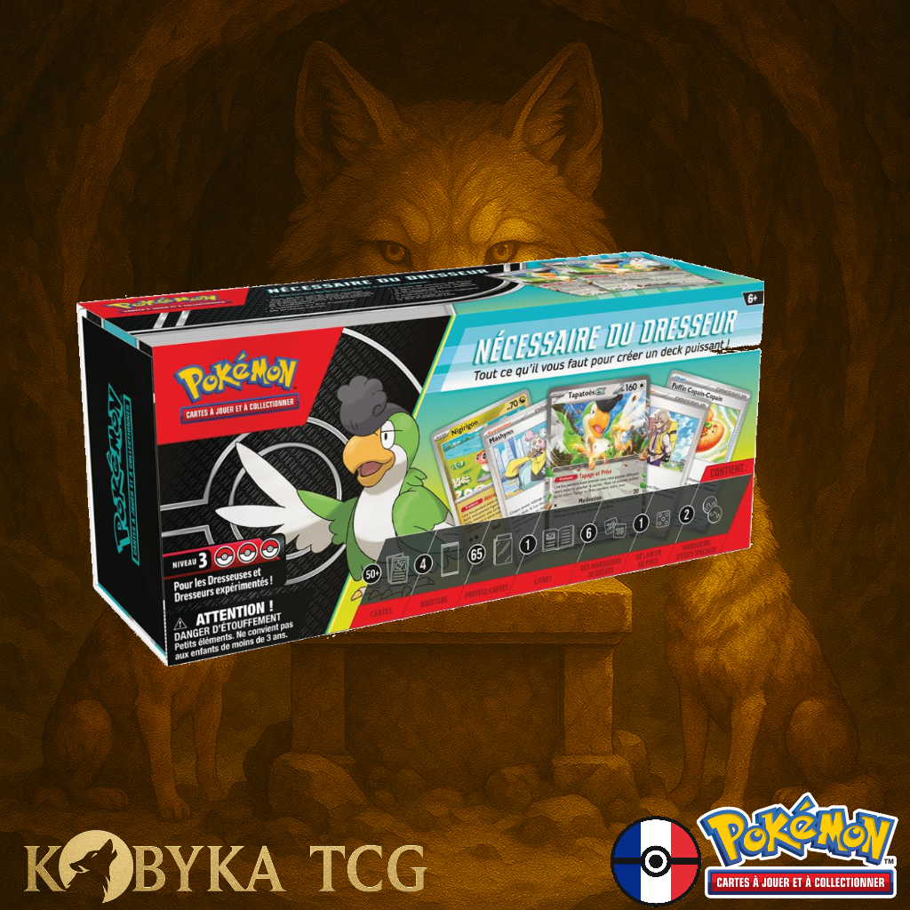 Construisez des decks puissants, créatifs et vraiment uniques grâce au Nécessaire du Dresseur 2024 ! Cette boîte complète est conçue pour vous aider à assembler des stratégies solides, tester des combos originaux et renforcer vos Pokémon préférés. Remplie de cartes Dresseur, d’Énergies, d’outils et d’accessoires, elle est idéale pour tous les joueurs souhaitant s’améliorer, du débutant motivé au dresseur expérimenté.
