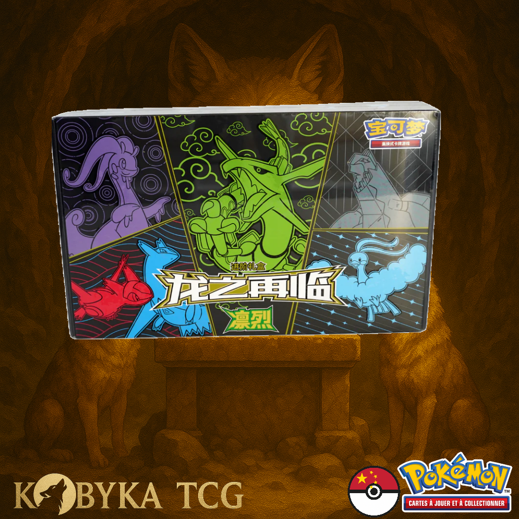đ Un coffret majestueux et luxueux cĂ©lĂ©brant le retour du dragon lĂ©gendaire â une piĂšce de collection incontournable pour les passionnĂ©s de Rayquaza et les amateurs dâimports PokĂ©mon rares.