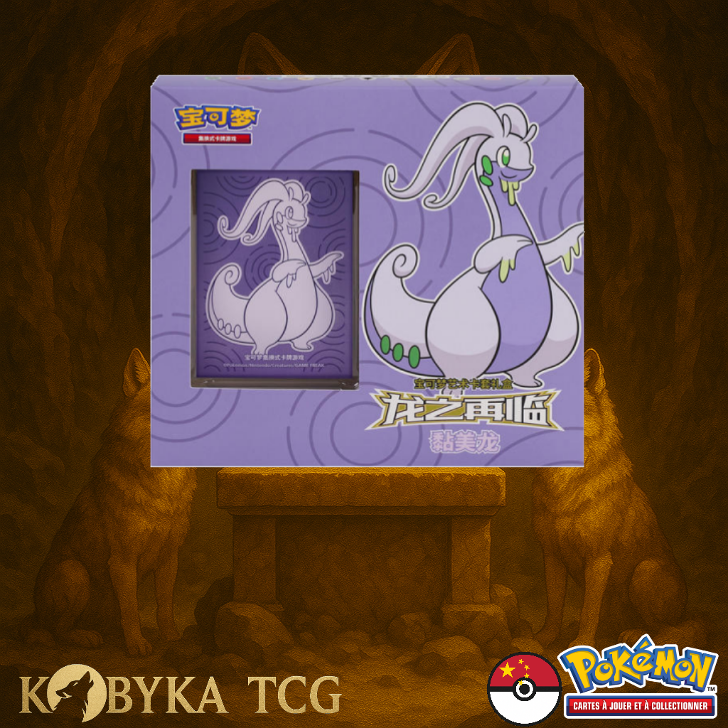 Découvrez la douceur légendaire de Muplodocus dans ce coffret exclusif Return of the Dragon, une édition chinoise sortie le 18 juin 2024. Parfait pour les collectionneurs et amateurs de Pokémon Dragon, ce set combine cartes holographiques, sleeves thématiques et mini-boosters issus de la série Étoiles Courageuses.