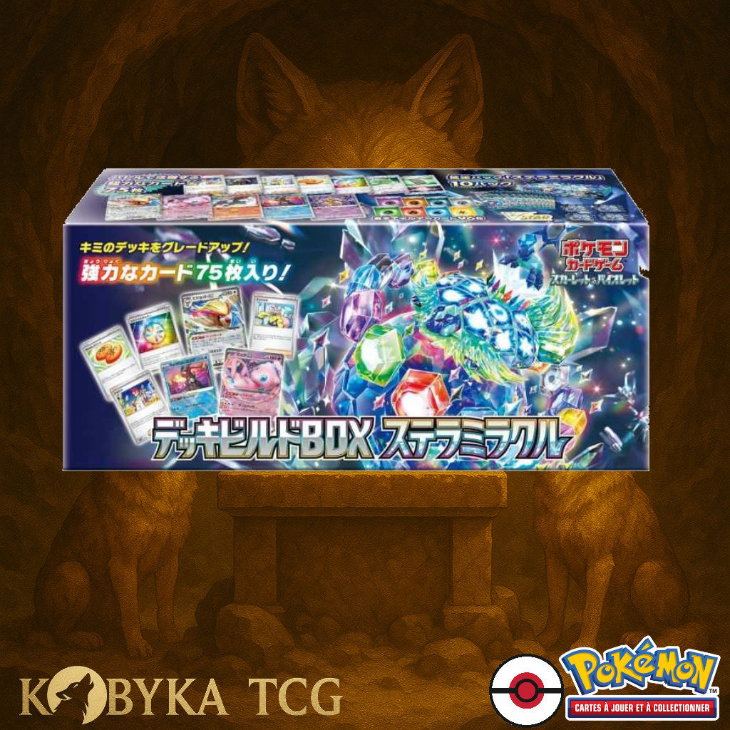 Construisez, optimisez et renforcez votre deck avec la Stellar Miracle Deck Build Box, un coffret japonais complet conçu pour les joueurs souhaitant maîtriser les mécaniques de l’extension Stellar Miracle du bloc Écarlate & Violet.