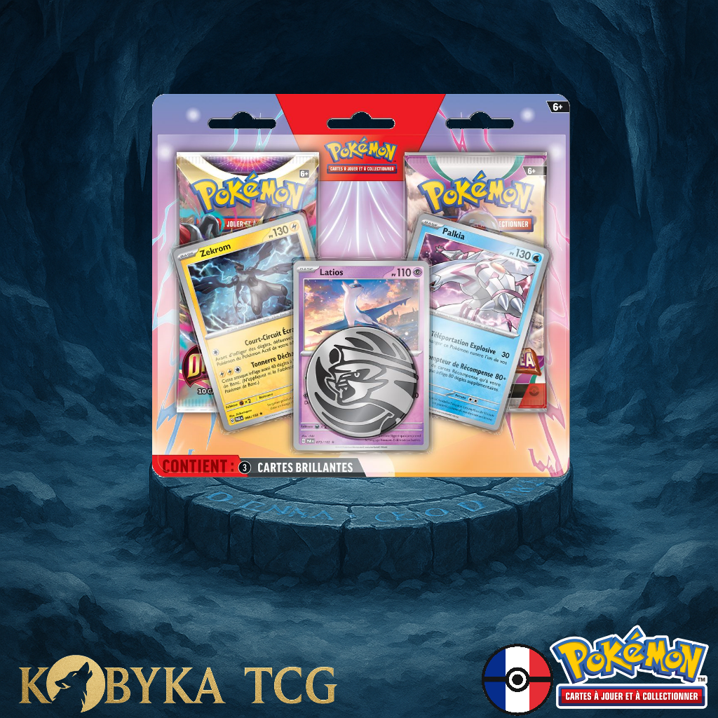 Plongez dans l’atmosphère mystique de Origine Perdue (EB11) et retrouvez trois Pokémon légendaires réunis dans un duopack exceptionnel : Zekrom, maître de la foudre ; Latios, le dragon ailé des cieux ; et Palkia, le gardien de l’espace.