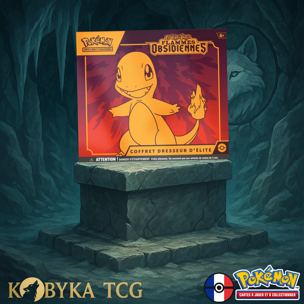 Pour canaliser ces pouvoirs ardents, le Coffret Dresseur d’Élite – Flammes Obsidiennes vous équipe de tout le nécessaire : 9 boosters, une carte promo full art de Salamèche, et des accessoires de qualité pour enflammer vos batailles.