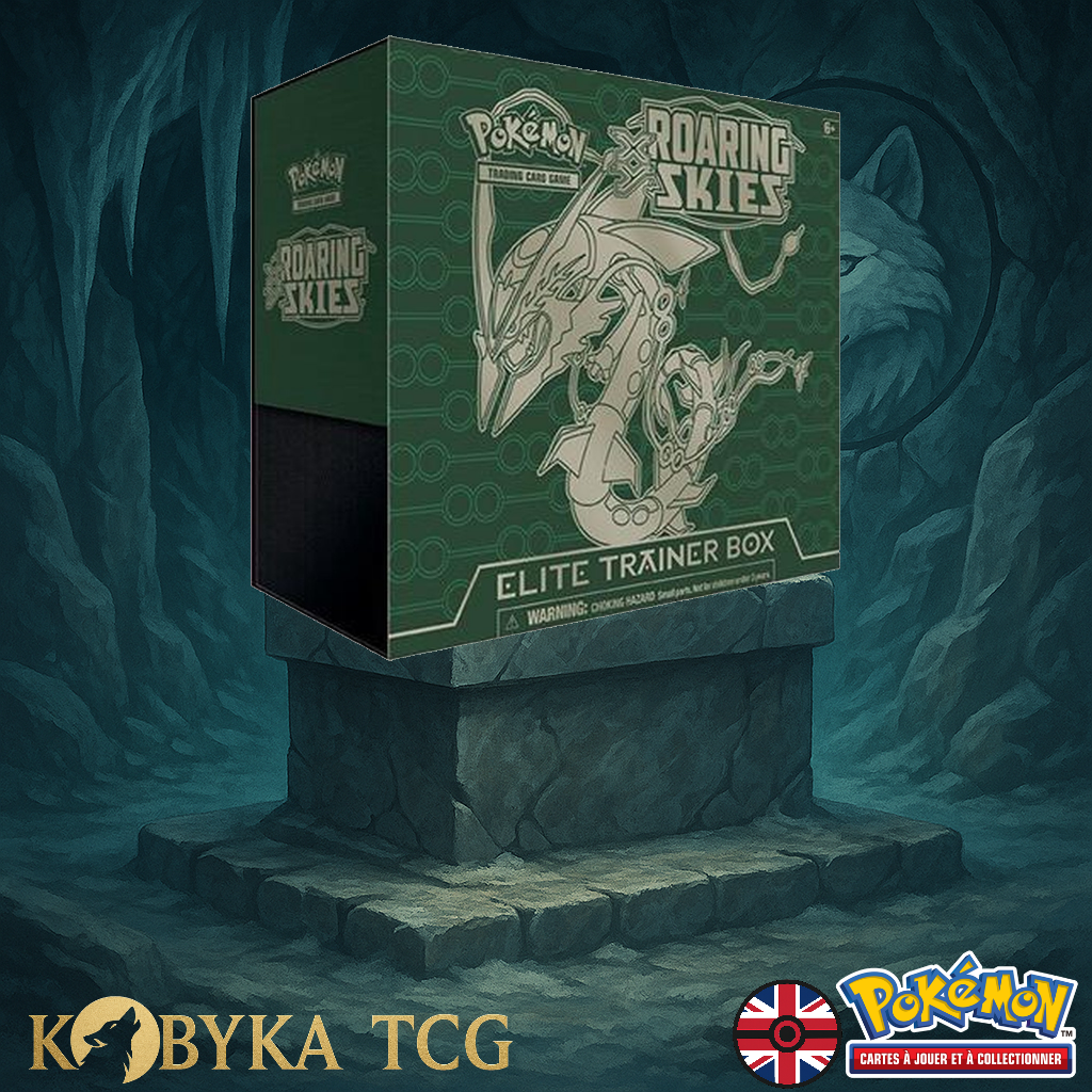 Envolez-vous vers les hauteurs du combat avec l’Elite Trainer Box XY – Roaring Skies, une extension mythique centrée sur les Pokémon Vol, Dragon et surtout l’imposant Mega-Rayquaza-EX !