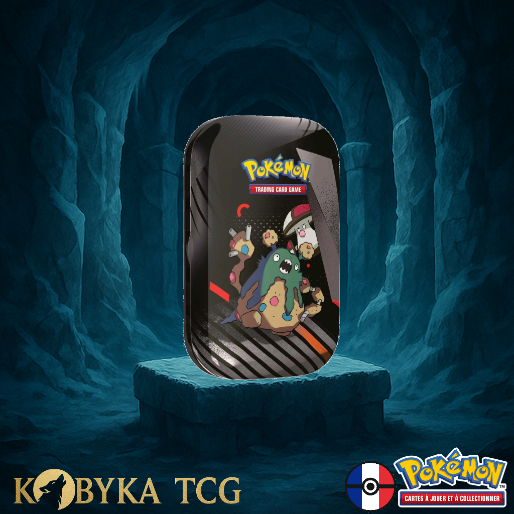 Ces Mini Tins de collection, au format compact et élégant, rendent hommage à 8 Pokémon légendaires et iconiques : Crocorible, Miasmax, Ohmassacre, Lugulabre, Mamanbo, Pyrax, Shaofouine et Fragilady.