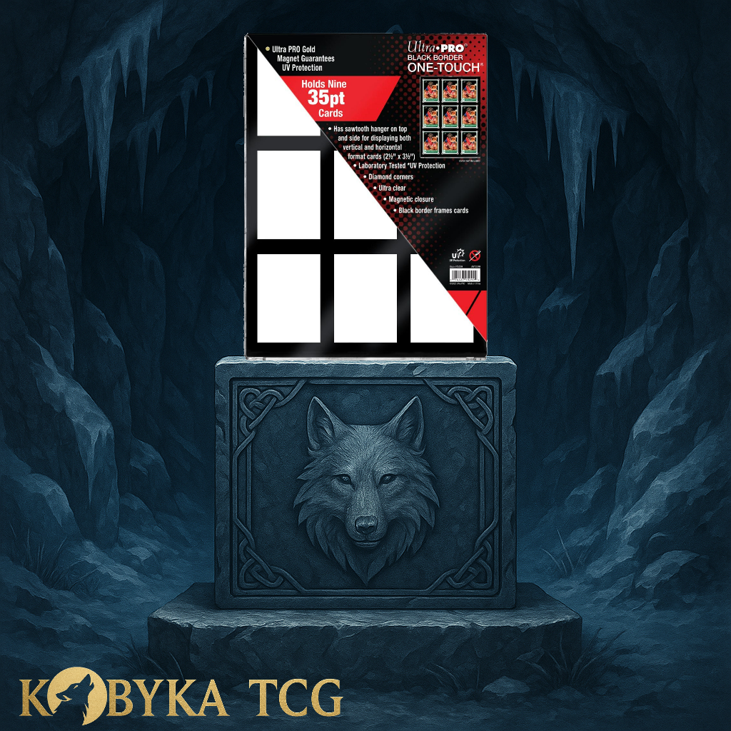Exposez jusqu’à neuf cartes dans un même cadre magnétique élégant avec la version Black Border du ONE‑TOUCH Ultra Pro.