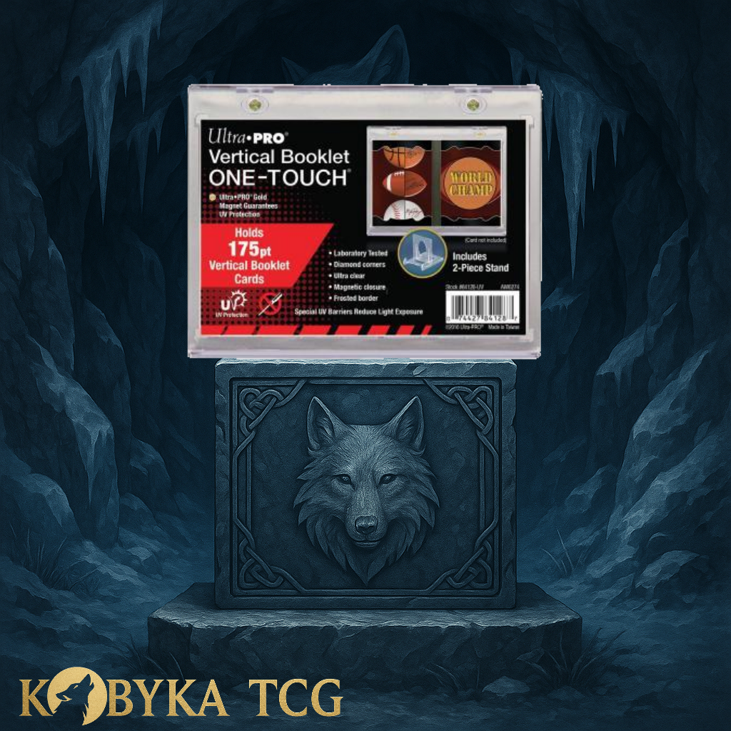 Protégez et exposez vos booklets et cartes double format avec le ONE-TOUCH Vertical Booklet Ultra Pro.